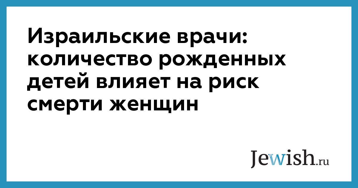Взаимосвязь между количеством детей и продолжительностью жизни установили врачи из отдела клинических патологий при беременности при больнице "Хадасса Эйн-Керем" в Иерусалиме. Профессора Ури Эльхалаль и Менахем Фридлендер на протяжении 37 лет собирали данные о рожавших женщинах. И, как пишет газета "Едиот Ахронот", уже на первом этапе обнаружили, что по мере роста количества детей в семье растет риск преждевременной смерти матери. В то время как различные болезни преждевременно уносят жизни 3,7% женщин, родивших по одному ребенку; в семьях, имеющих от пяти до девяти детей, преждевременно умирают 13,5% женщин.
