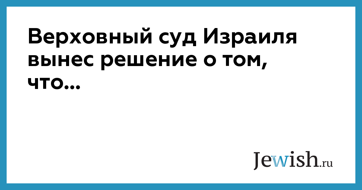 Верховный суд Израиля вынес решение о том, что...