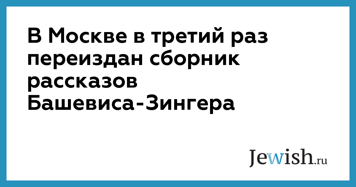 В Москве в третий раз переиздан сборник рассказов Башевиса-Зингера