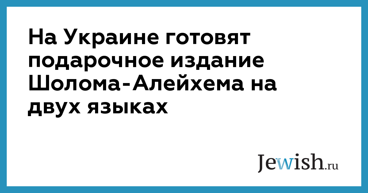 На Украине готовят подарочное издание Шолома-Алейхема на двух языках