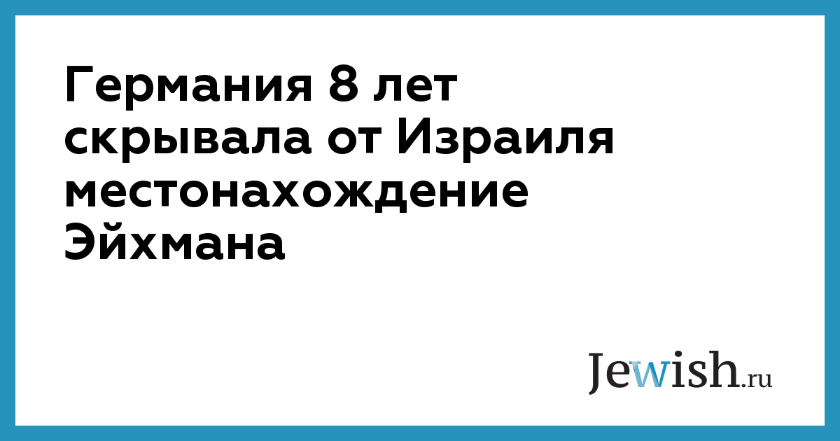 В субботу, 8 января, немецкий еженедельник Bild опубликовал копии архивных материалов, свидетельствующих о том, что внешней разведке Германии (BND) было известно о том, где скрывается от правосудия бывший полковник СС Адольф Эйхман, однако эти данные в течение восьми лет скрывались от Израиля.