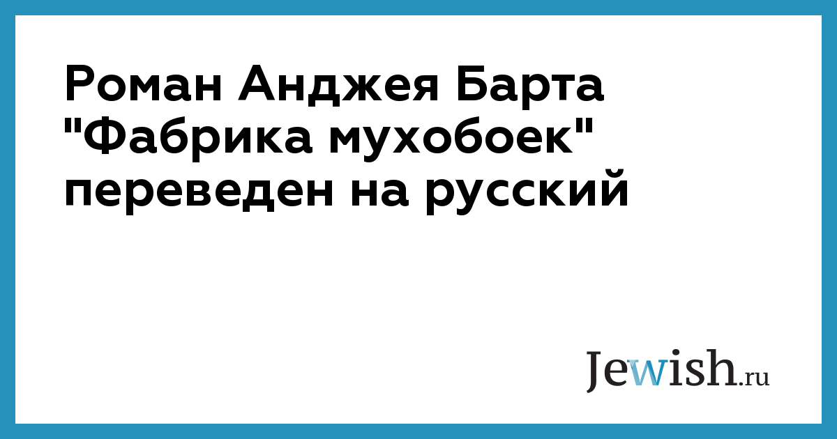 Роман Анджея Барта "Фабрика мухобоек" переведен на русский