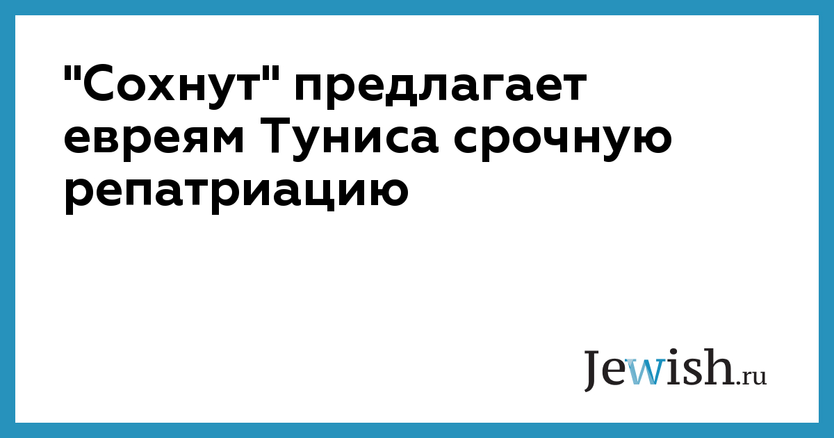 Еврейское агентство разработало программу помощи еврейской общине Туниса. Несмотря на то, что беспорядки в Тунисе не имеют антисемитской направленности, и представители еврейской общины страны не опасаются за свою жизнь, в "Сохнуте" предлагают всем желающим репатриироваться в Израиль или же приехать в еврейское государство временно, пока ситуация в Тунисе не стабилизируется.