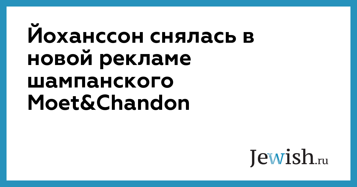 Шампанское под маркой Moet & Chandon запустило новую рекламную кампанию, для которой снялась актриса Скарлетт Йоханссон. Об этом сообщает портал Lucire. Фотографии с Йоханнсон для рекламы можно посмотреть на сайте издания.Йоханссон является официальной "посланницей" шампанского Moet & Chandon с марта 2009 года. До этого актриса снималась в рекламе Louis Vuitton, Reebok, Dolce & Gabbana и других брендов.