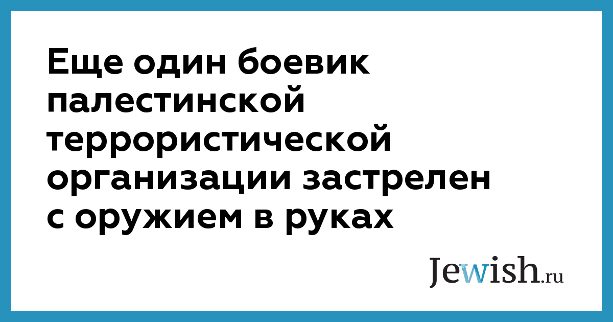 Еще один боевик палестинской террористической организации застрелен с оружием в руках