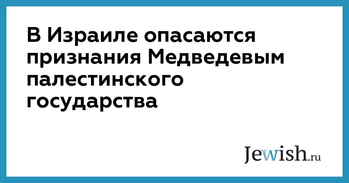 В Иерусалиме опасаются, что президент РФ Дмитрий Медведев, находящийся в данный момент с визитом в Иерихоне, уже сегодня может объявить о признании Россией палестинского государства в границах 1967 года.