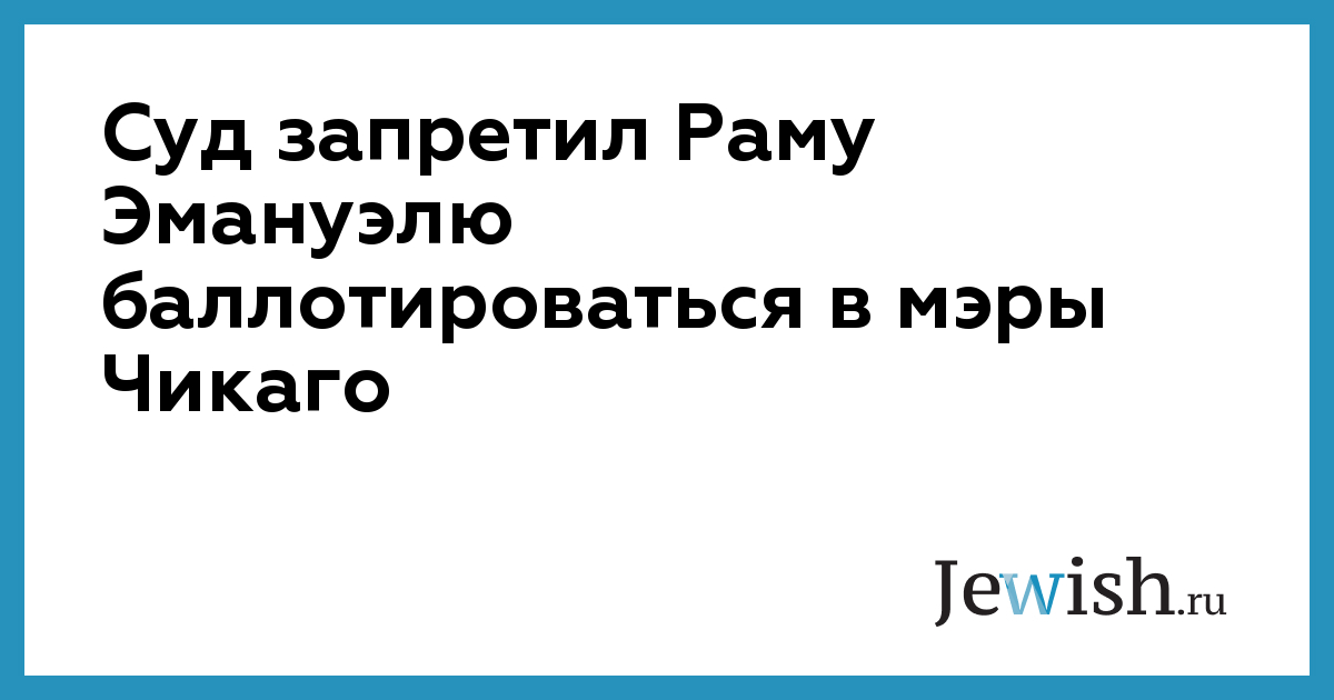 Суд запретил Раму Эмануэлю баллотироваться в мэры Чикаго