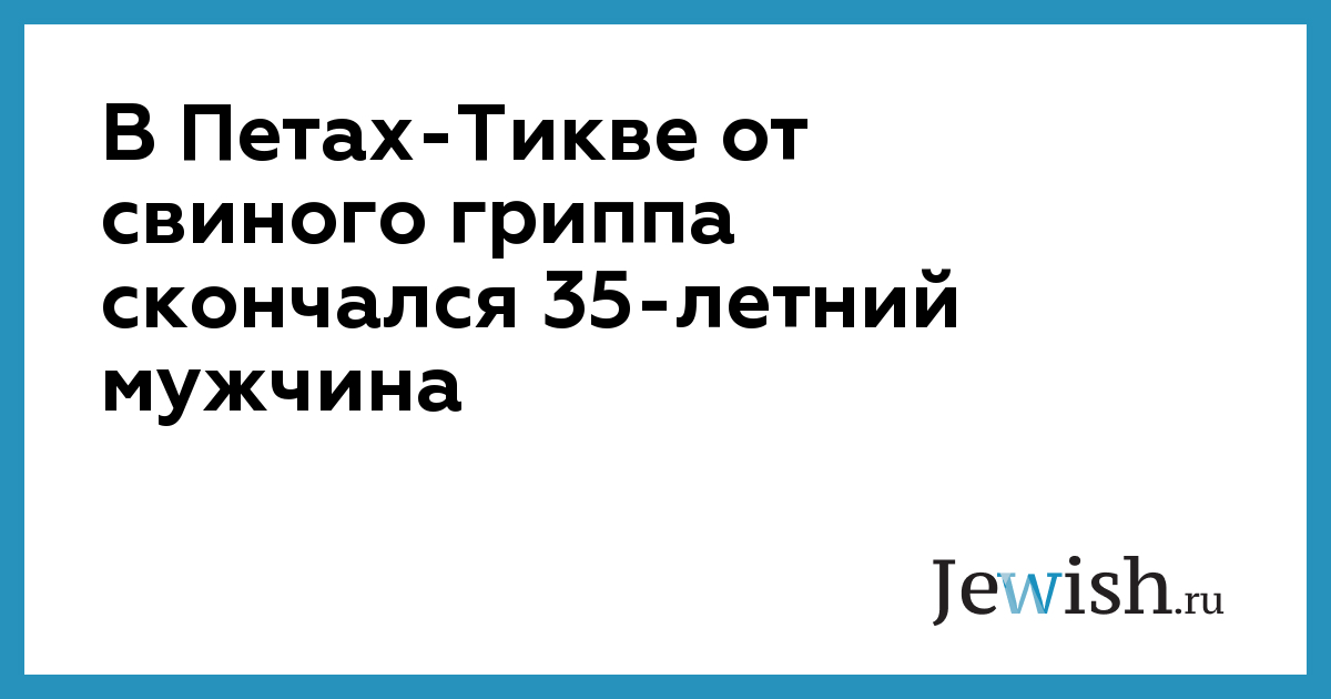В Петах-Тикве от свиного гриппа скончался 35-летний мужчина