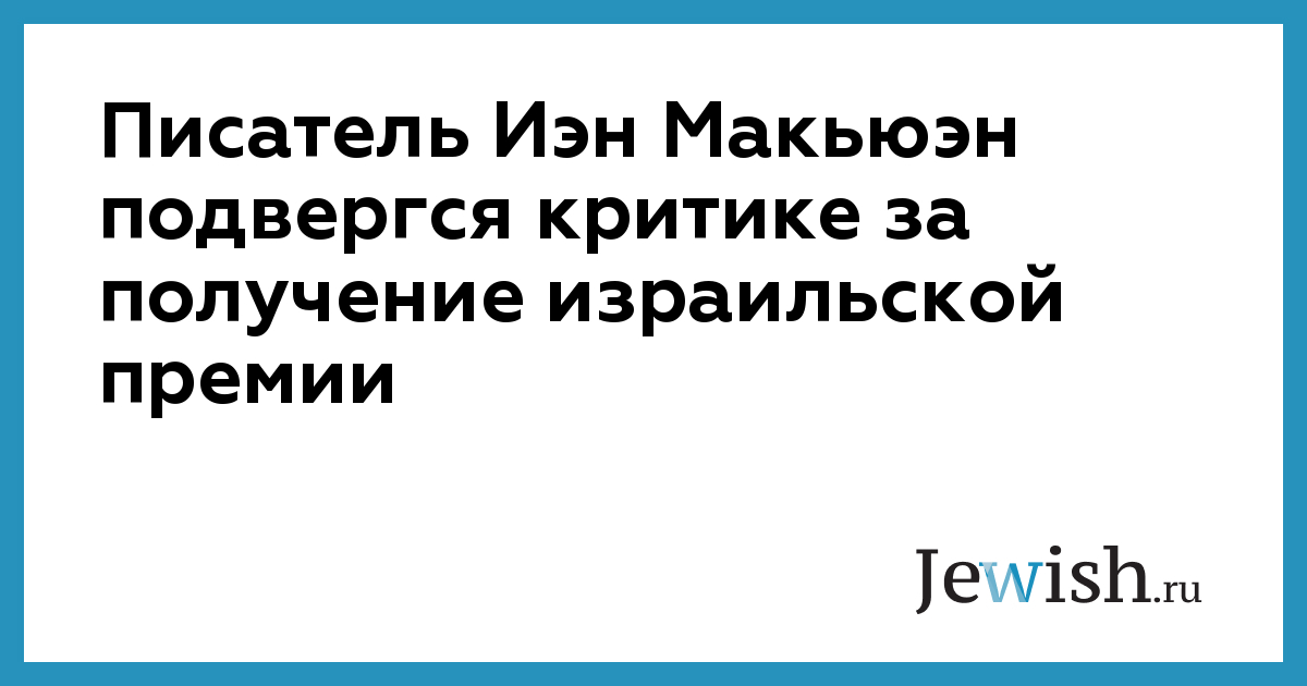 Писатель Иэн Макьюэн подвергся критике за получение израильской премии