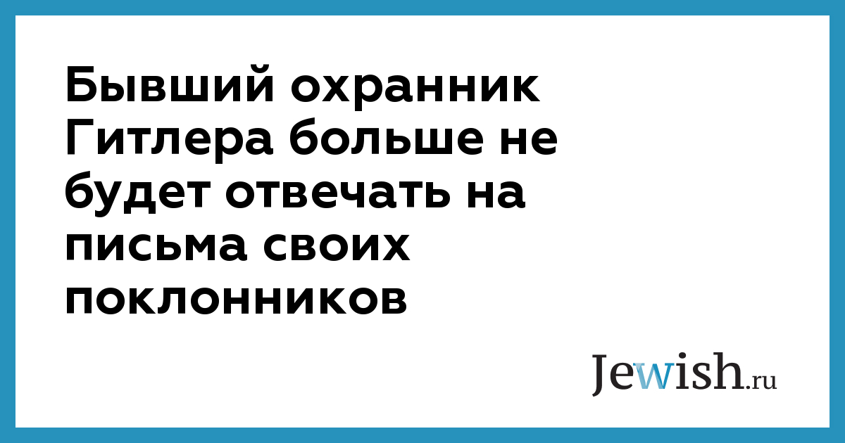Бывший охранник Гитлера больше не будет отвечать на письма своих поклонников