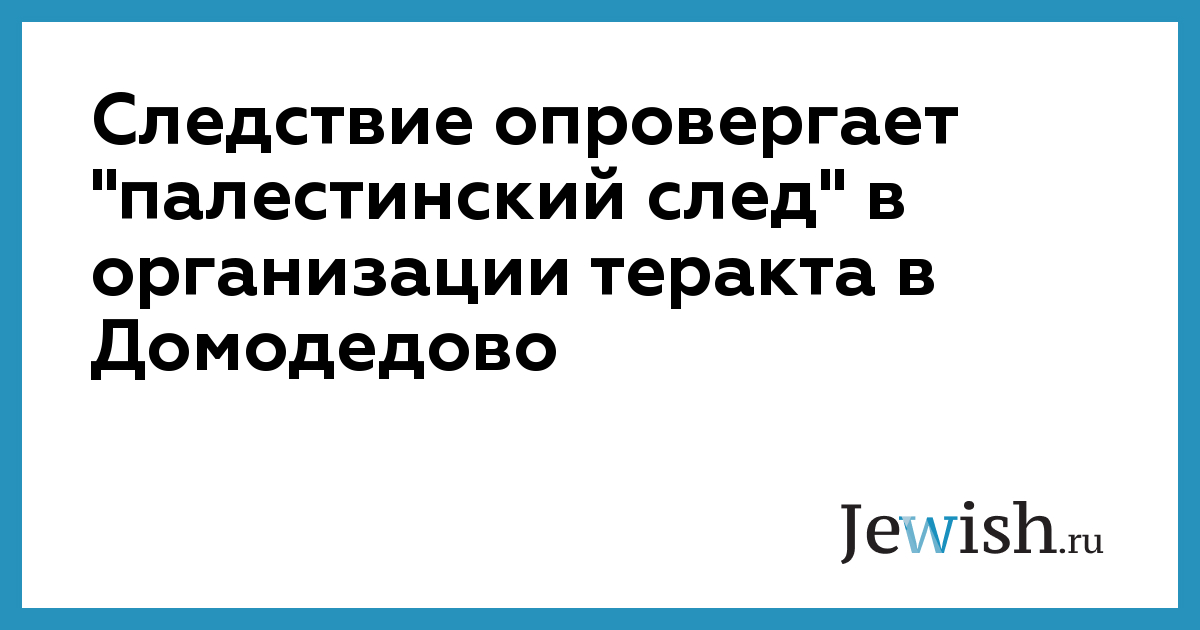 Между тем "палестинский след" в организации теракта в Домодедово опровергают источники "Интерфакса". Информаторы агентства из следственной группы заявили, что "таких данных у них пока нет". Что касается версии о "палестинской" бомбе, собеседники агентства допускают, что в телах погибших и раненых могла быть обнаружена каменная крошка. Однако она могла отколоться от пола зала прилетов аэропорта, а не входить в состав поражающих элементов взрывного устройства, отмечает "Интерфакс".