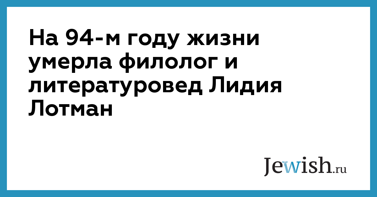 В понедельник, 31 января на 94-м году жизни умерла филолог и литературовед Лидия Лотман, исследователь русской литературы XIX века, ведущий сотрудник Пушкинского Дома (Института русской литературы РАН). Об этом сообщается на сайте Пушкинского Дома.