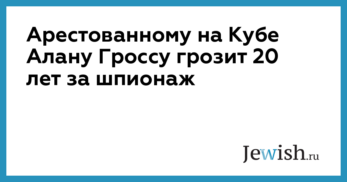 Гражданину США Алану Гроссу, арестованному на Кубе в 2009 году, грозит 20 лет тюремного заключения. Его обвиняют в шпионаже и угрозе "незавивисимости и территориальной неприкосновенности Кубы", сообщает EJP со ссылкой на высказанное в минувшую пятницу заявление правительства страны.