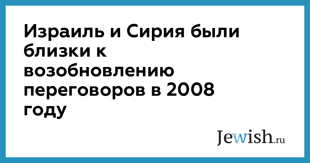 Сирия и Израиль были близки к возобновлению прямых мирных переговоров в 2008 году. Об этом заявил вчера высокопоставленный чиновник, служивший в канцелярии бывшего премьер-министра Эхуда Ольмерта, пожелавший не оглашать его имя. Он также добавил, что Дамаск уже дал сигнал к ослаблению требований о полном уходе Израиля с захваченных земель.