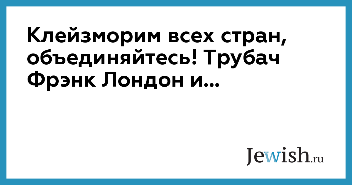 Клейзморим всех стран, объединяйтесь! Трубач Фрэнк Лондон и...