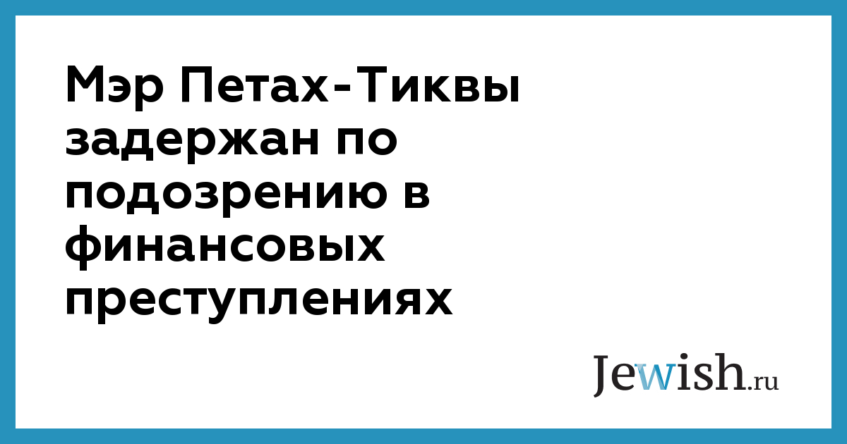 Мэр Петах-Тиквы задержан по подозрению в финансовых преступлениях