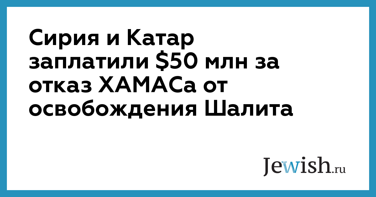 Сирия и Катар заплатили $50 млн за отказ ХАМАСа от освобождения Шалита
