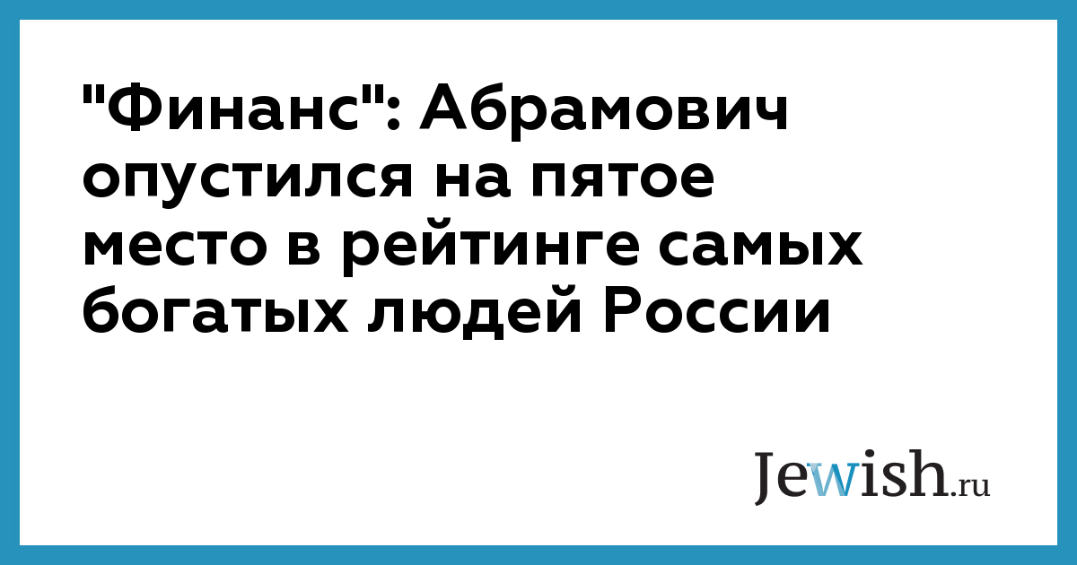 Абрамович в рейтинге "Финанса" опустился на пятое место, на четвертом – бизнесмен Олег Дерипаска. С шестого по десятое место расположились Алексей Мордашов ("Северстали"), Сулейман Керимов (Совета федерации и Nafta Moskva), Михаил Фридман ("Альфа-групп"), Владимир Потанин ("Интеррос"), Вагит Алекперов ("ЛУКойл").