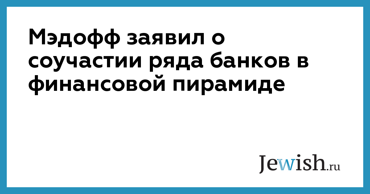 Мэдофф заявил о соучастии ряда банков в финансовой пирамиде