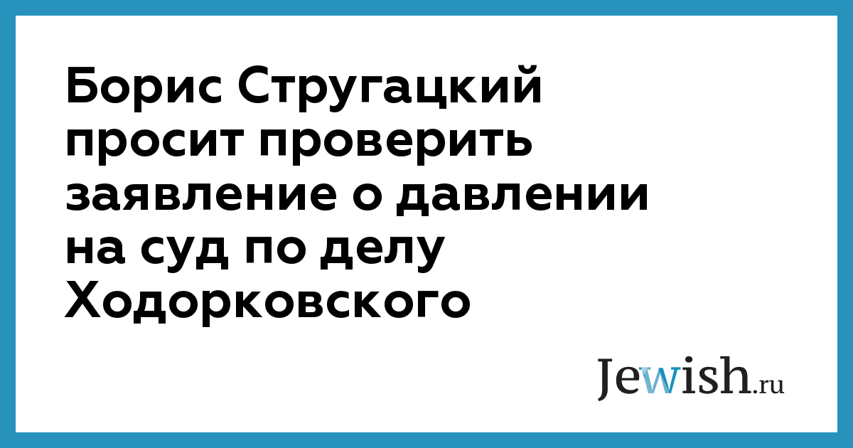 Борис Стругацкий просит проверить заявление о давлении на суд по делу Ходорковского