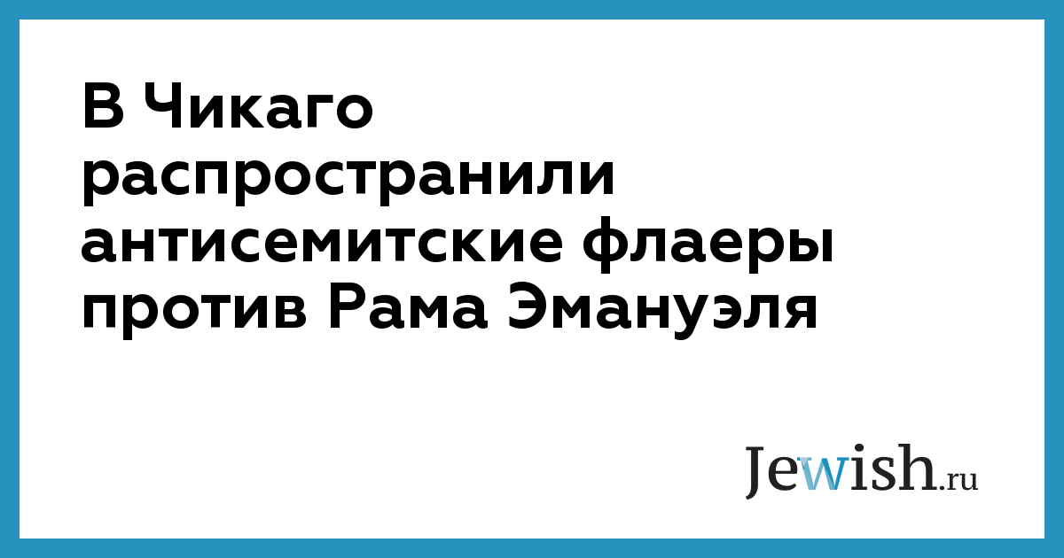 Экс-глава администрации Белого дома Рам Эмануэль, который борется за пост мэра Чикаго, стал объектом антисемитских нападок. За неделю до муниципальных выборов, в ходе которых жителям города предстоит решить, кто станет их новым градоначальником, в чикагском метро были обнаружены флаеры со следующим текстом: "Я буду управлять Чикаго так же, как управлял Freddie Mac, который принес мне 30 млн долларов дохода. Право на это дает мне тот факт, что я — выходец из семьи евреев, переживших Холокост".