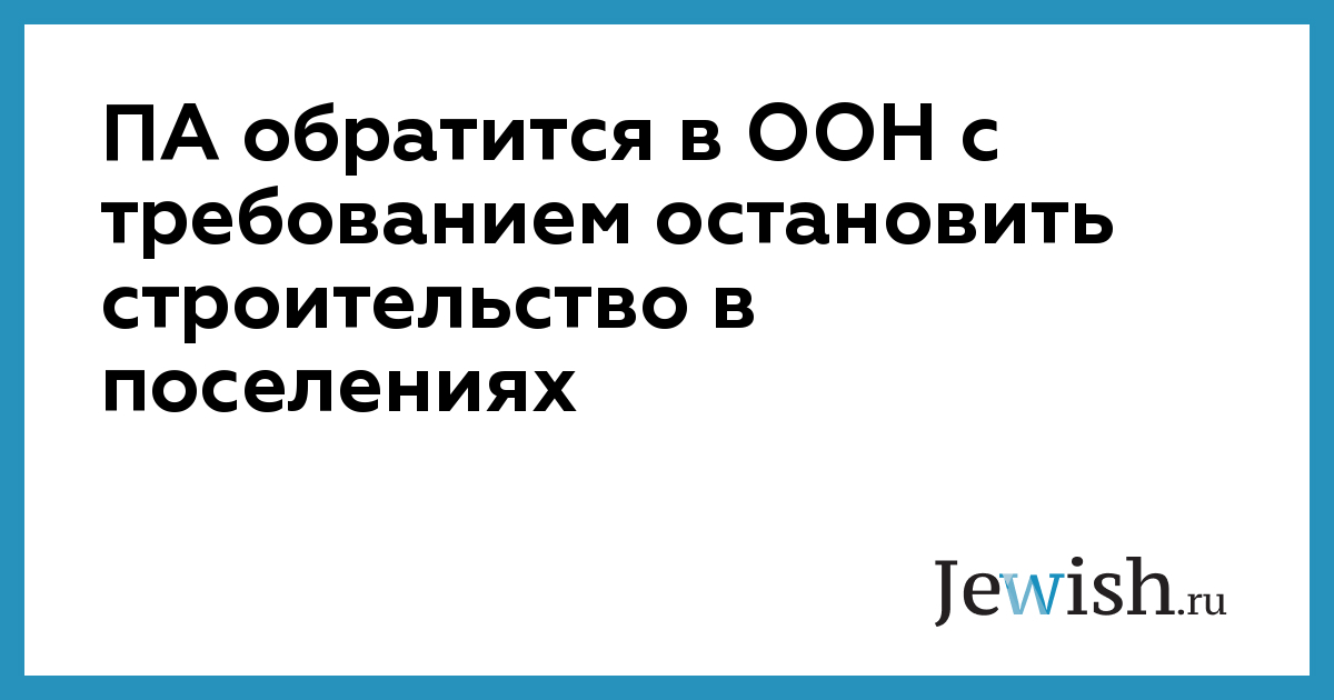 ПА обратится в ООН с требованием остановить строительство в поселениях
