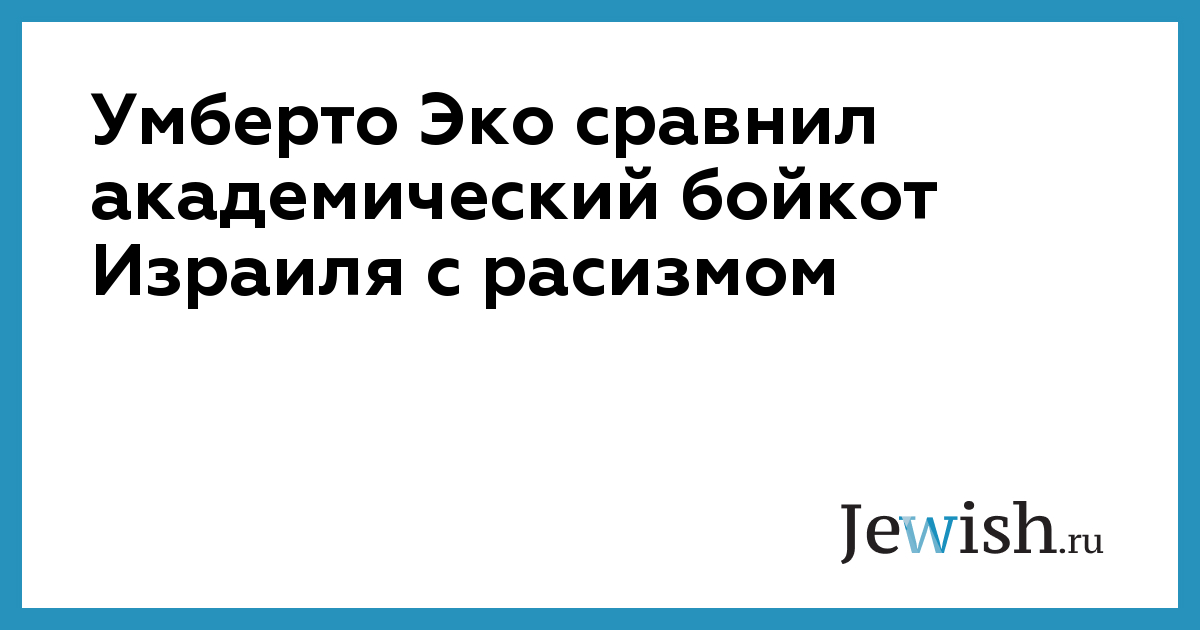 Академический бойкот в качестве критики правительственной политики сродни расизму, заявил известный итальянский писатель и ученый Умберто Эко на 25-й Международной книжной ярмарке, проходящей в эти дни в Иерусалиме. Это был его ответ на то, что британские писатели призвали своего коллегу Иэна Макьюэна отказаться от литературной награды, Премии Иерусалима, в знак протеста против политики израильского правительства по отношению к палестинцам.