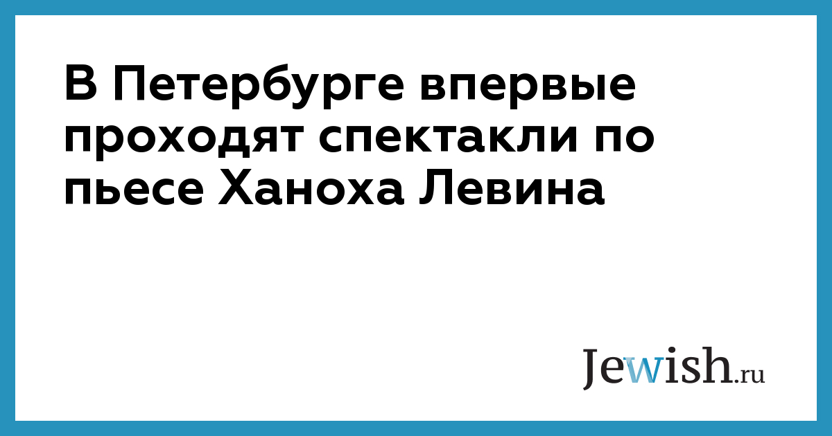 В Петербурге впервые проходят спектакли по пьесе Ханоха Левина