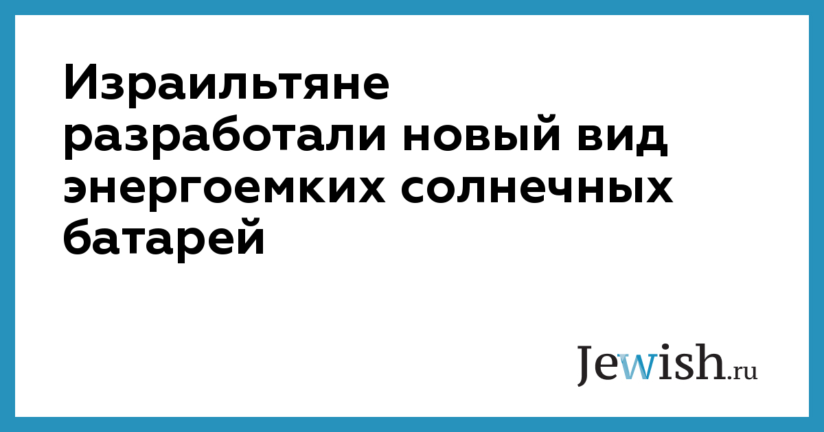 Израильтяне разработали новый вид энергоемких солнечных батарей