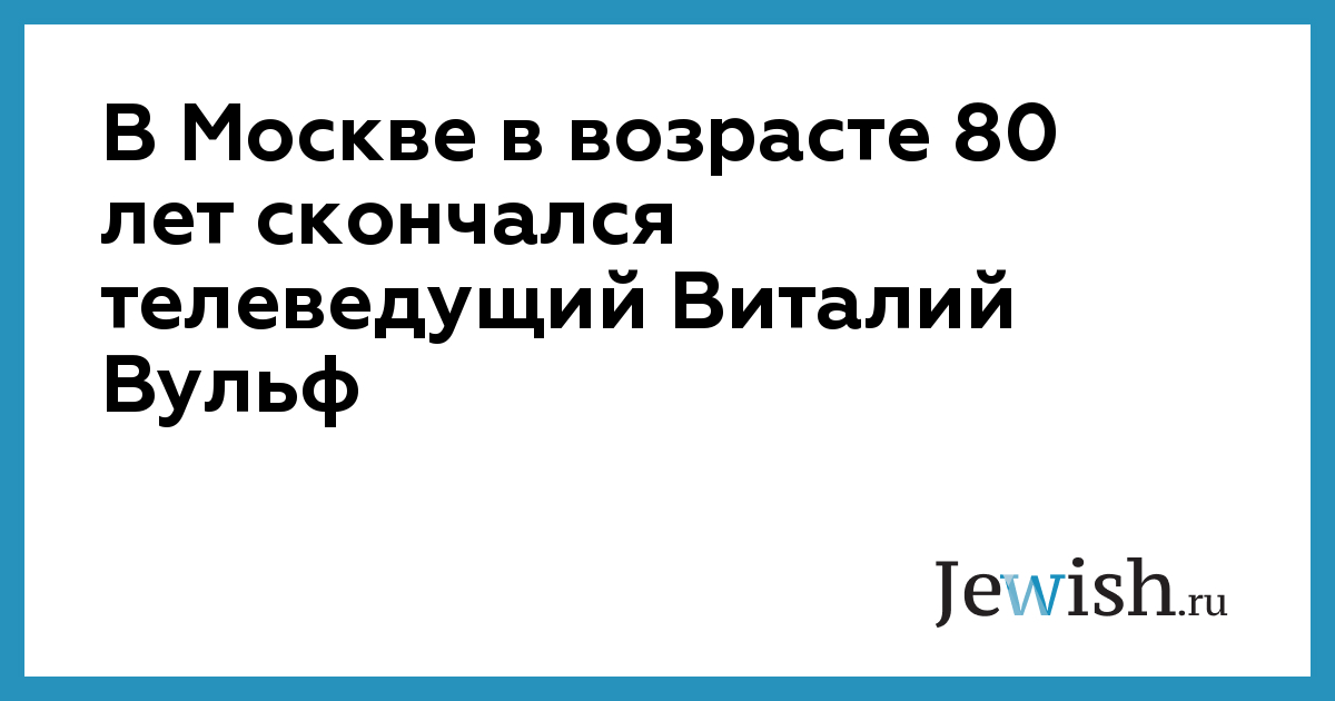 Вульф был госпитализирован еще 15 февраля. Несколько дней назад состояние телеведущего резко ухудшилось. Он был переведен в реанимационное отделение Боткинской больницы.