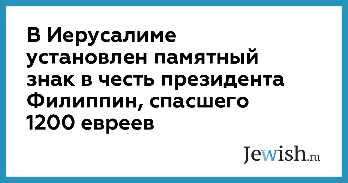 В Иерусалиме установлен памятный знак в честь президента Филиппин, спасшего 1200 евреев