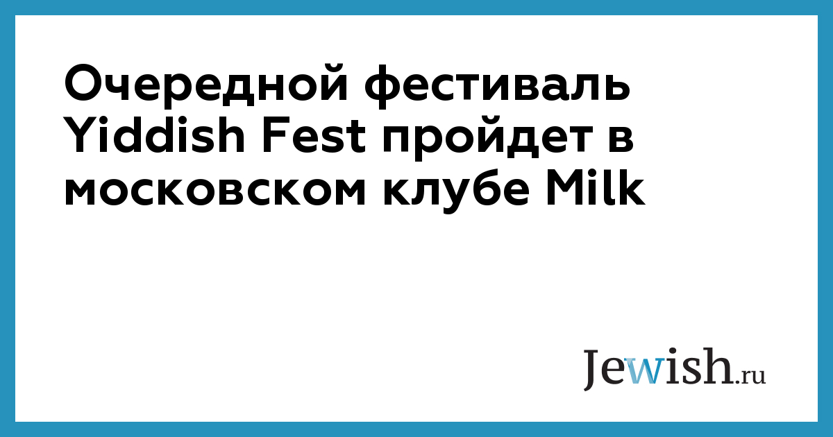 Очередной фестиваль Yiddish Fest пройдет в московском клубе Milk