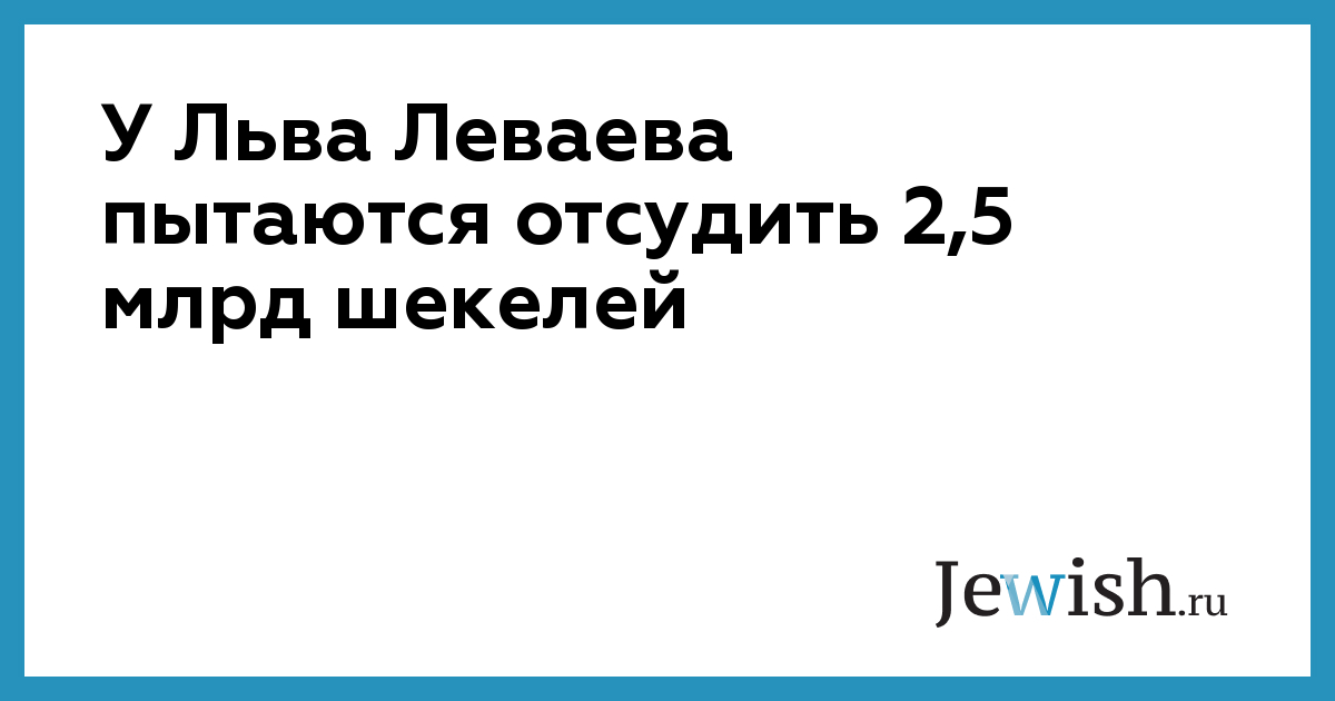 Израильский бизнесмен Берти Синбети не оставляет попыток отсудить у Льва Леваева и холдинга Leviev Group 2,5 млрд шекелей по иску, поданному почти 1,5 года назад. Как пишет TheMarker, представители Леваева продолжают называть начатую тяжбу абсурдным представлением.