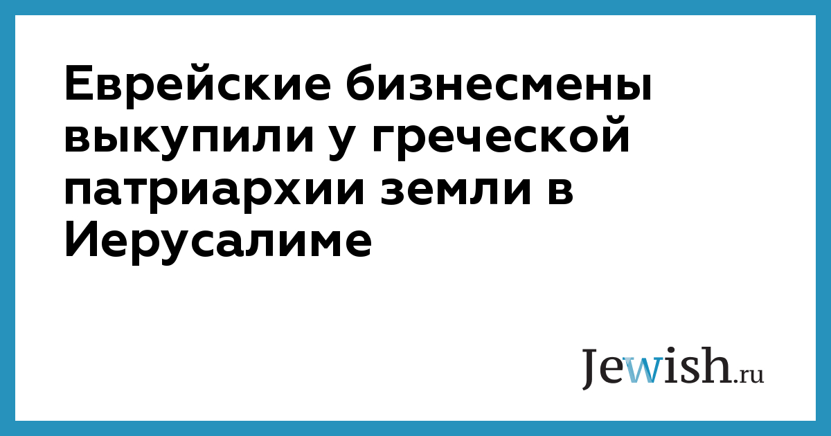 Группа еврейских бизнесменов, граждан Израиля и других стран, выкупила у греческой патриархии права на земли в престижных кварталах Иерусалима общей площадью в несколько сотен дунамов. Сумма сделки составила около 80 млн шекелей.