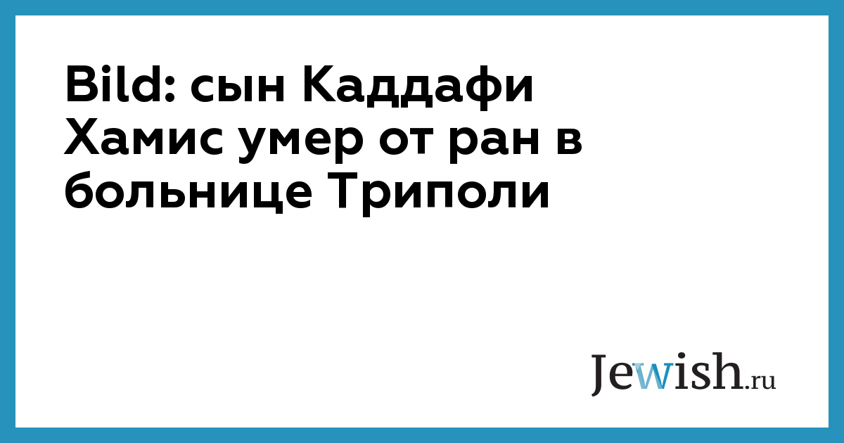 Bild: сын Каддафи Хамис умер от ран в больнице Триполи