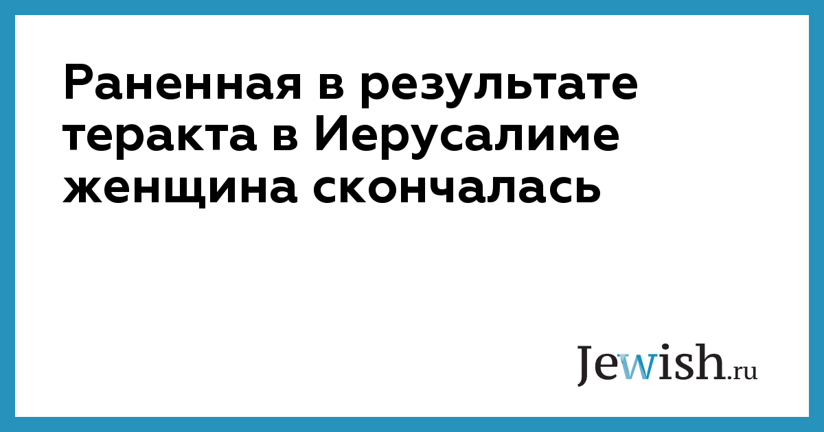 Раненная в результате теракта в Иерусалиме женщина скончалась