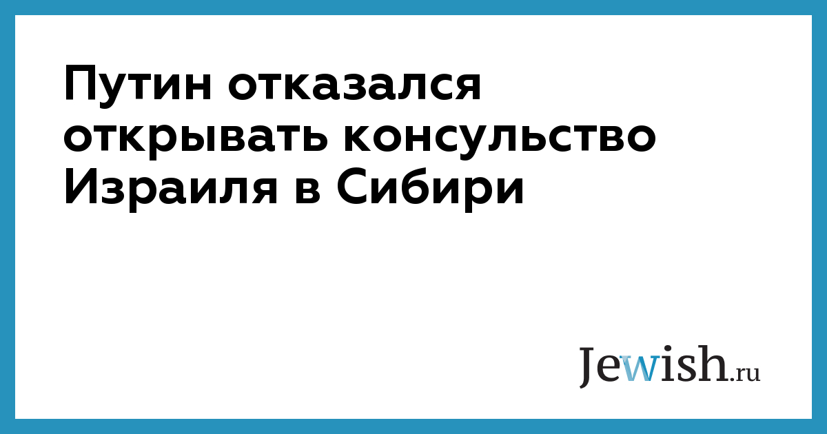 Путин отказался открывать консульство Израиля в Сибири