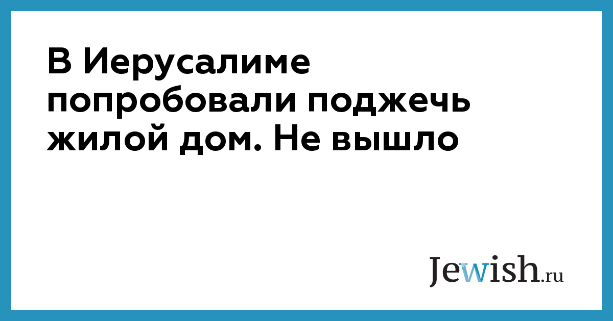 В Иерусалиме попробовали поджечь жилой дом. Не вышло