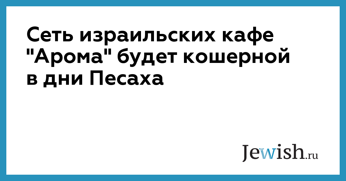Сеть израильских кафе "Арома" будет кошерной в дни Песаха