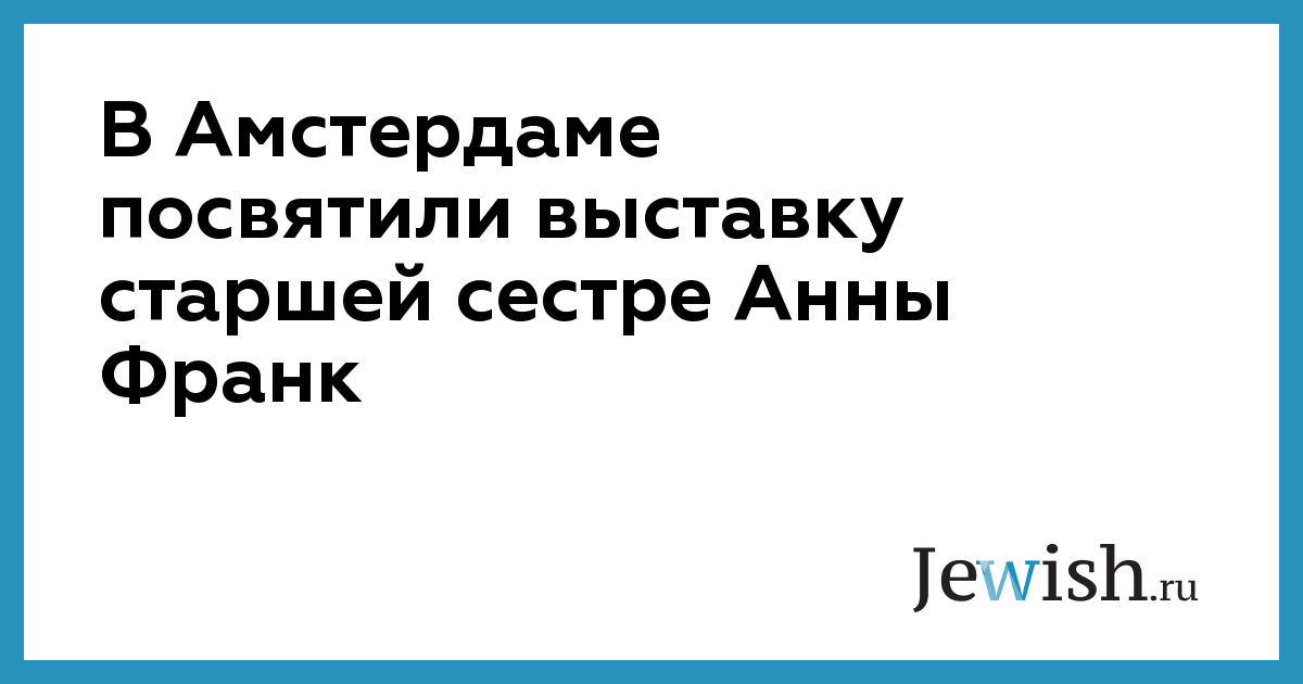 В Амстердаме посвятили выставку старшей сестре Анны Франк