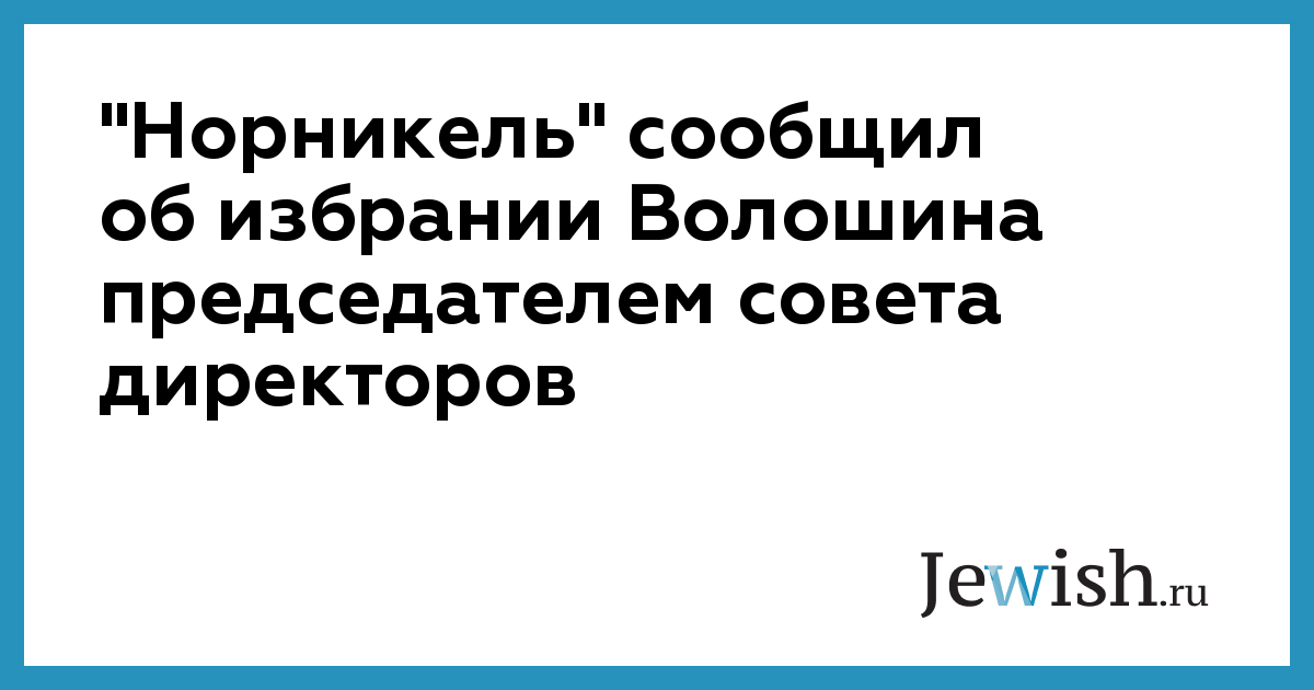 "Норникель" сообщил об избрании Волошина председателем совета директоров