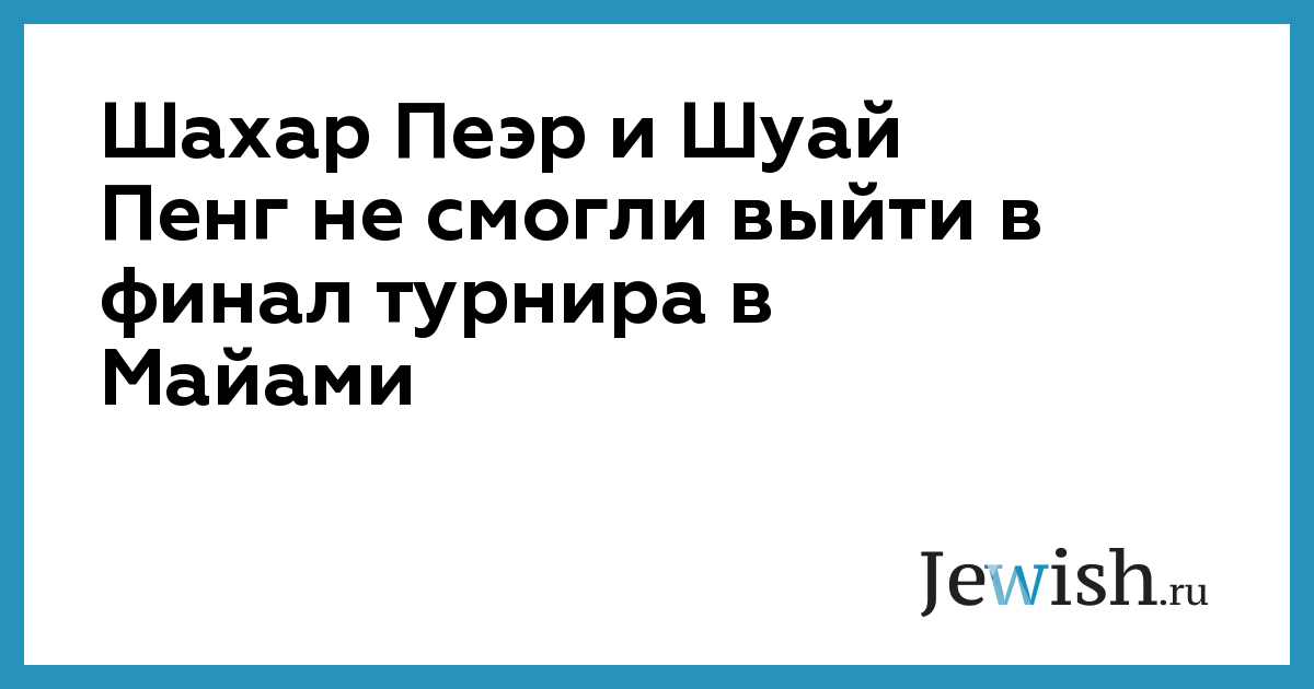 Шахар Пеэр и Шуай Пенг не смогли выйти в финал турнира в Майами