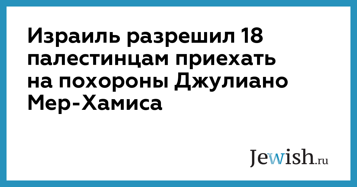 18 палестинцев, жителей Дженина, получили официальные разрешения от израильских властей на прибытие на территорию Израиля для участия в похоронах 52-летнего директора дженинского "Театра Свободы", израильского актера и режиссера Джулиано Мер-Хамиса.