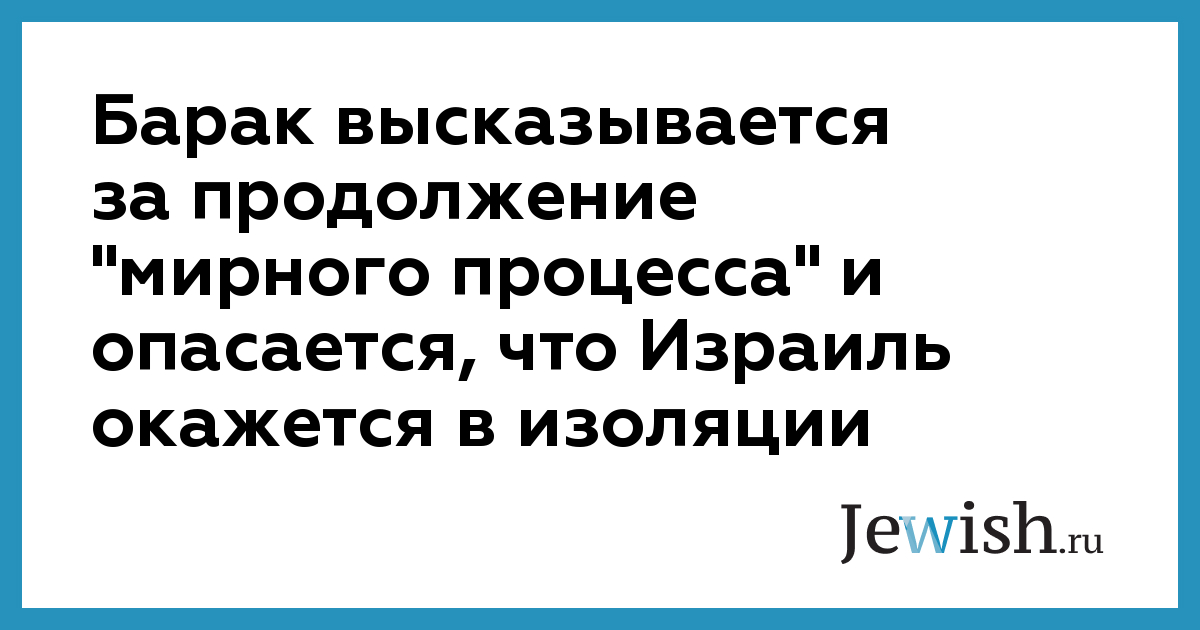 Барак высказывается за продолжение "мирного процесса" и опасается, что Израиль окажется в изоляции
