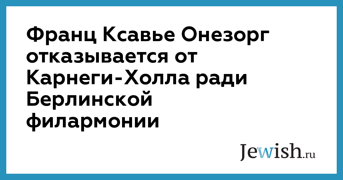 Франц Ксавье Онезорг, один из самых значительных немецких музыкальных менеджеров, возвращается в Германию из-за океана. С 1 сентября 2001 года он займёт пост директора Берлинской филармонии. Клаудио Аббадо, нынешний дирижёр Берлинского филармонического оркестра, доволен, как и его преемник Саймон Рэттл, музыканты ликуют, городской уполномоченный по вопросам культуры Кристиан Штёльцль довольно потирает руки: — "Я уверен, что с приходом Онезорга в музыкальной жизни города произойдут поистине радикальные изменения. Онезорг — гений дружбы с великими музыкантами". Год назад Онезорг, в течение многих лет возглавлявший Кёльнскую филармонию и сделавший имя как создатель фестиваля «Триеннале», уехал в Нью-Йорк, где стал директором Карнеги-холла — одного из самых известных концертных залов мира. Казалось бы — исполнение мечтаний и вершина карьеры. Однако строптивый европеец в Нью-Йорке пришелся по душе не всем. Вскоре последовал ряд конфликтов с сотрудниками Карнеги-холла и членами наблюдательного совета. Онезорг пытался реформировать концертную программу и выступал против сдачи Карнеги-холла под поп-концерты. На стенах Карнеги-холла начали появляться свастики, а на столе директора — заявления об уходе по собственному желанию. Затем ситуация несколько стабилизировалась, однако Онезорг, по всей видимости, уже принял своё решение. В среду он объявил о своём намерении расторгнуть договор с Карнеги-холлом к 31 августа 2001 года. На следующий день он займёт своё место в директорском кабинете Берлинской филармонии.