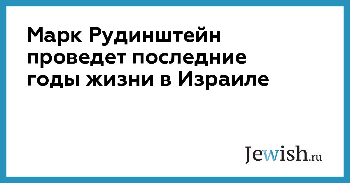 Марк Рудинштейн проведет последние годы жизни в Израиле