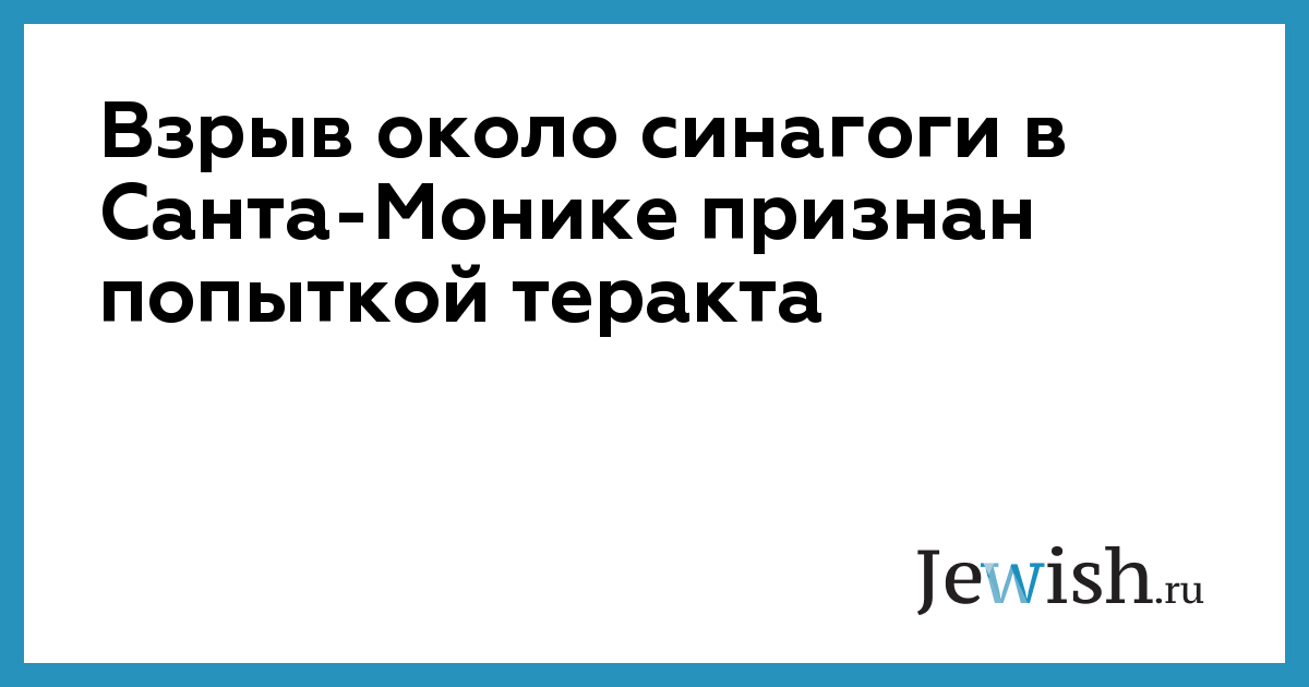 В четверг, 7 апреля, около синагоги "Бейт ХАБАД" в городе Санта-Моника (Калифорния) прогремел взрыв. В результате взрыва никто не пострадал, но сотни местных жителей были эвакуированы из опасного района. В тот же день газета The Los Angeles Times сообщила, что полицейские пришли к выводу, что речь идет не о попытке теракта, а о некой "производственной аварии".