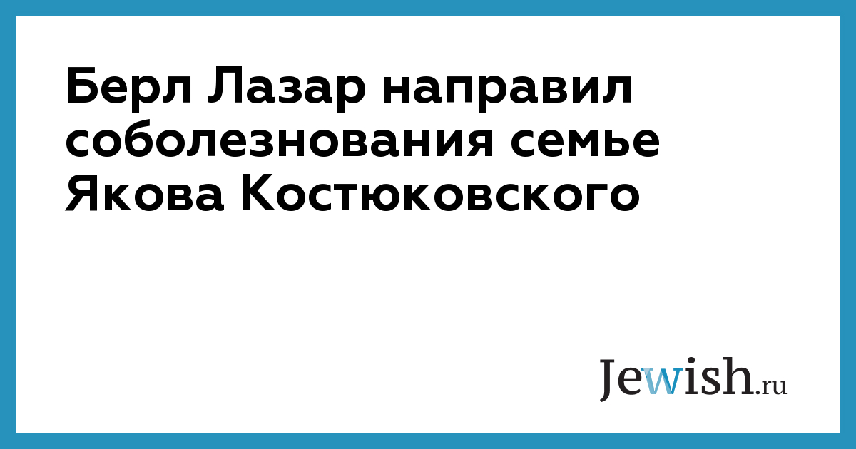 Главный раввин России Берл Лазар направил соболезнования семье Якова Ароновича Костюковского в связи с его безвременной кончиной.