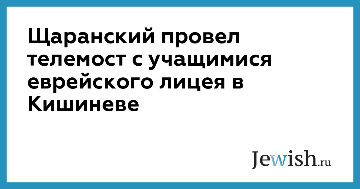 Вчера впервые состоится "Прямая линия" — видеоконференция между кишиневским технологическим лицеем ОРТ им. Б.-З. Герцля и главой "Сохнута" Натаном Щаранским в Иерусалиме. Основная тема разговора — перспективы развития еврейского образования в Молдавии.
