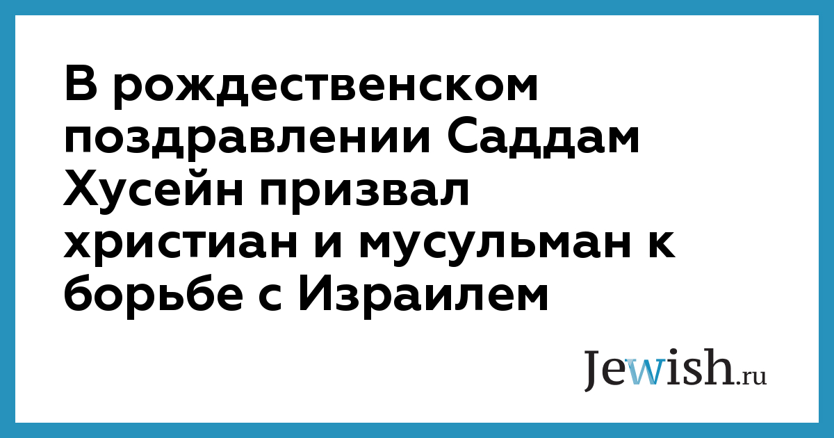 В рождественском поздравлении Саддам Хусейн призвал христиан и мусульман к борьбе с Израилем